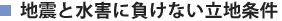 当物件は、強固な地盤と標高に守られた、水害と地震に強い立地に立てられています。